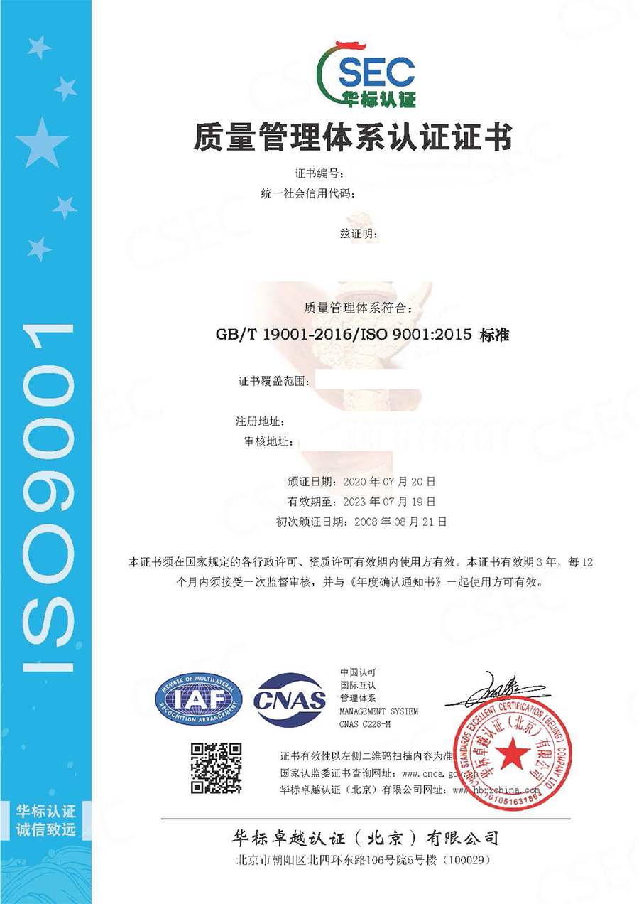 ISO質(zhì)量管理體系認(rèn)證證書(shū)